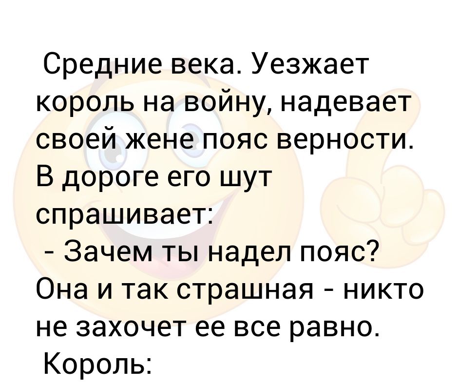 Srednie Veka Uezzhaet Korol Na Vojnu Nadevaet Svoej Zhene Poyas Vernosti V Doroge Ego Shut Sprashivaet Zachem Ty Nadel Poyas Ona I Tak Strashnaya N